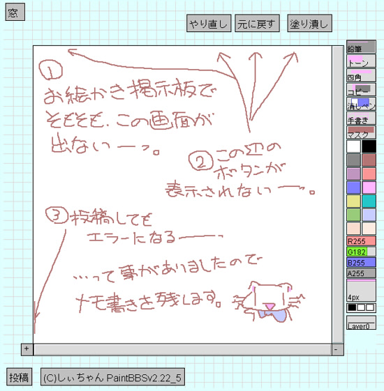 お絵かき掲示板→お絵かき→お絵かき画面すら出ない。
