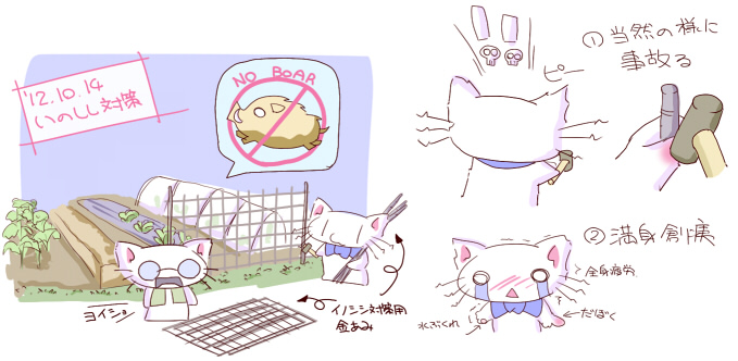 折角作った農作物をイノシシに荒らされると、本当に泣けてきます(つДT)